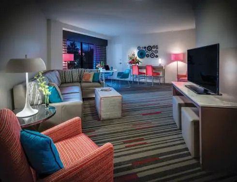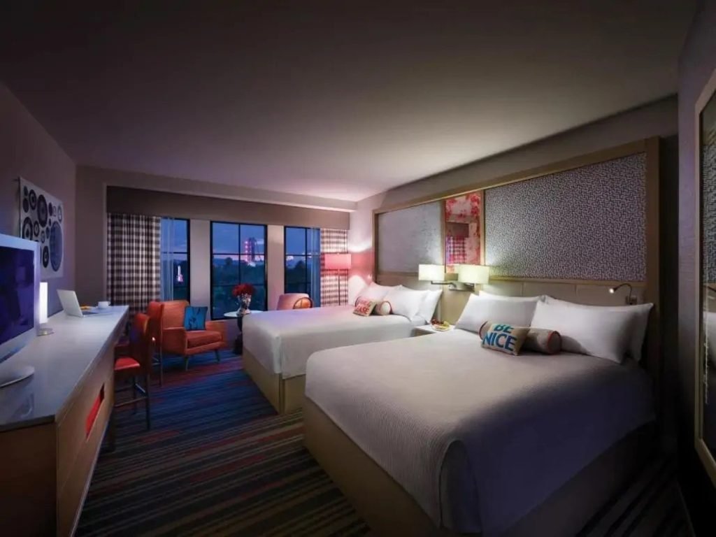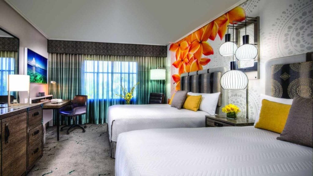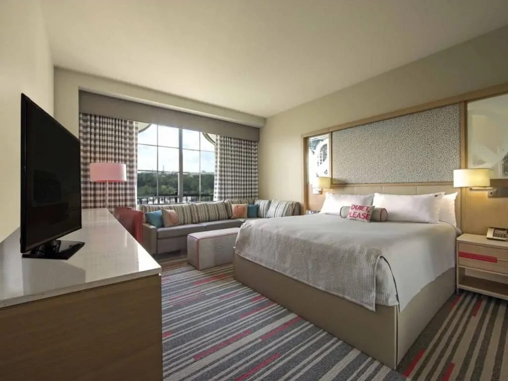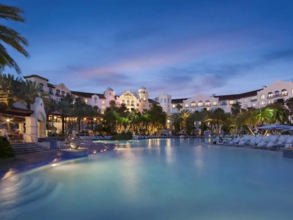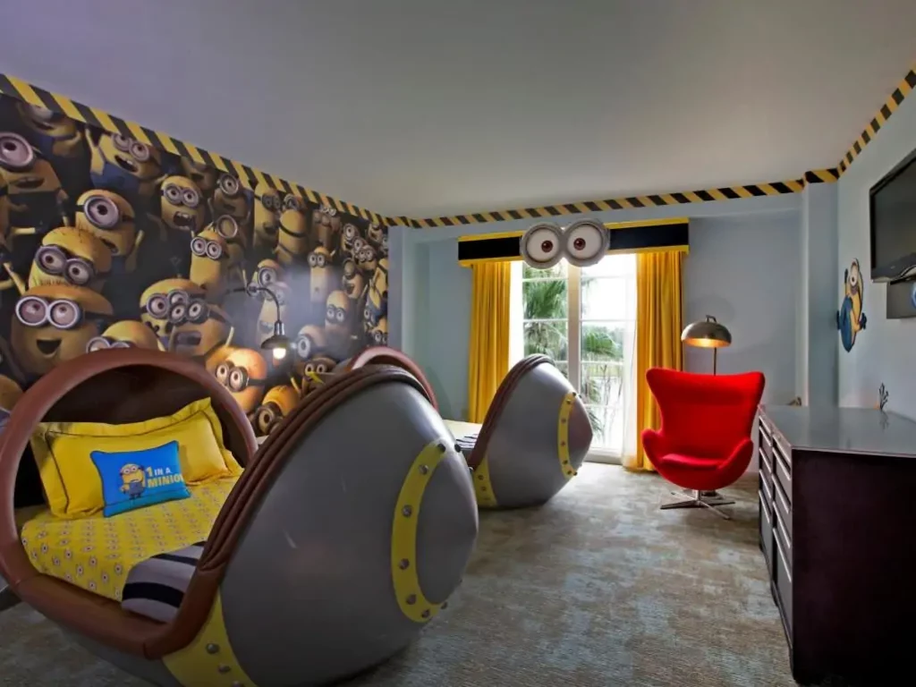 Staying at this 5* on-site hotel, you will feel as if you been transported to Portofino village in Italy itself. Set on a stunning harbour and with details like cobblestone streets and towering Italian cypress trees guests can enjoy out door cafes or listen to the live music in the evening. The hotel has 3 pools, 8 restaurants and lounges and a supervised kids activity centre. The hotel features 750 rooms. All with air-conditioning, 42″ flat-screen TV, iPod docking station, coffee maker, safe, iron and board, bathrobes, and hairdryer. Nightly turn-down service on-request. Garden View Rooms are 450 sq ft and have views of the lawns and gardens, with 1 king-size bed or 2 queen-size beds, sleeping maximum 4 adults or 2 adults and 2 children. There is a range of accommodation to choose from: Standard room have a garden view or bay view; Guest staying in a Club Level room have exclusive access to the Portofino Club Lounge, personal concierge service, and other special perks when booking a Club Level room or suite. The family-friendly and fun Despicable Me Kids’ Suites are large family suites, featuring two bedrooms and a separate kids room with a small table and chair set,...