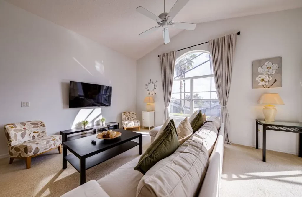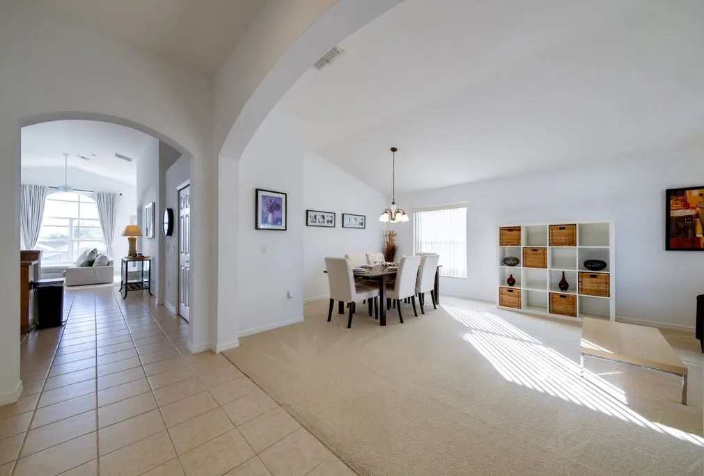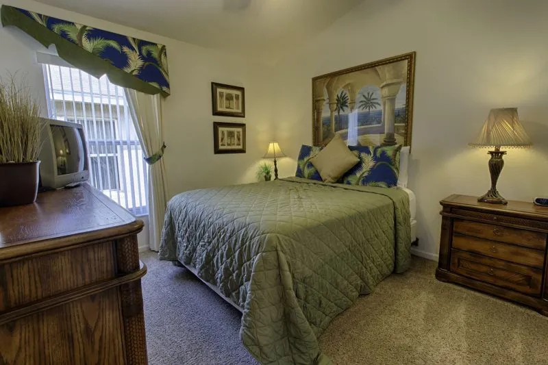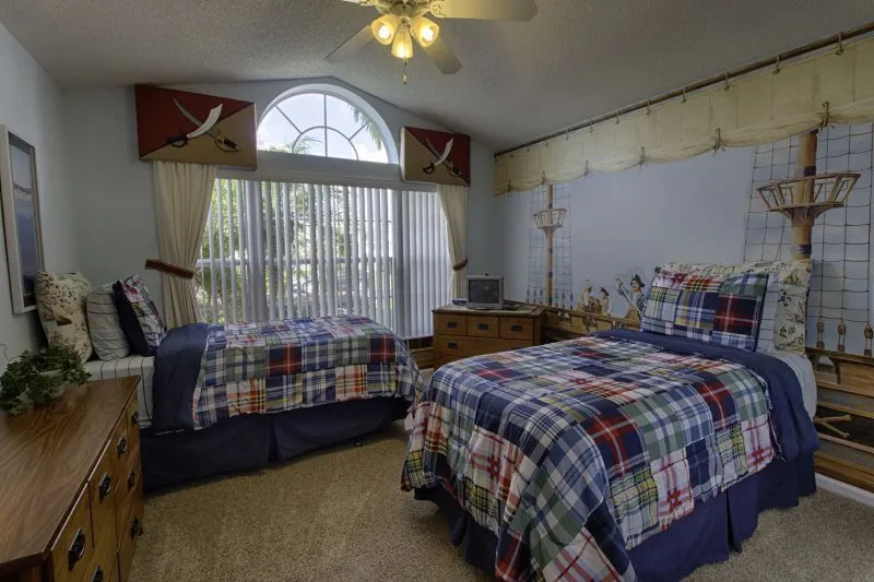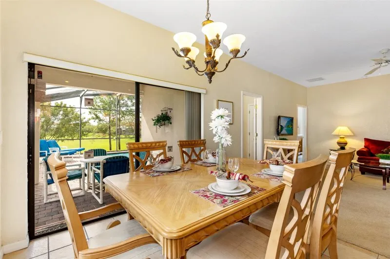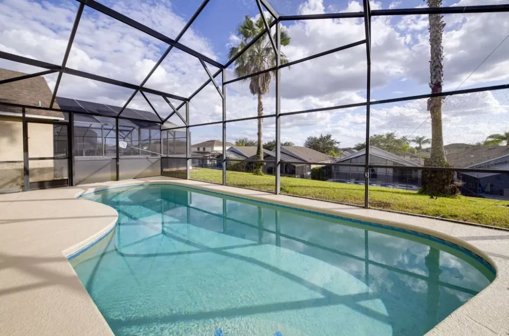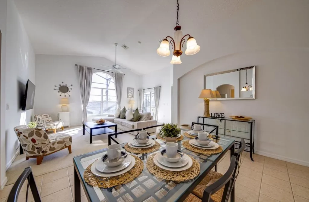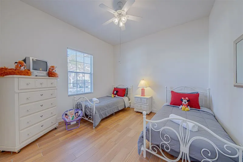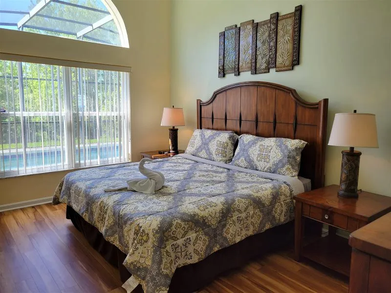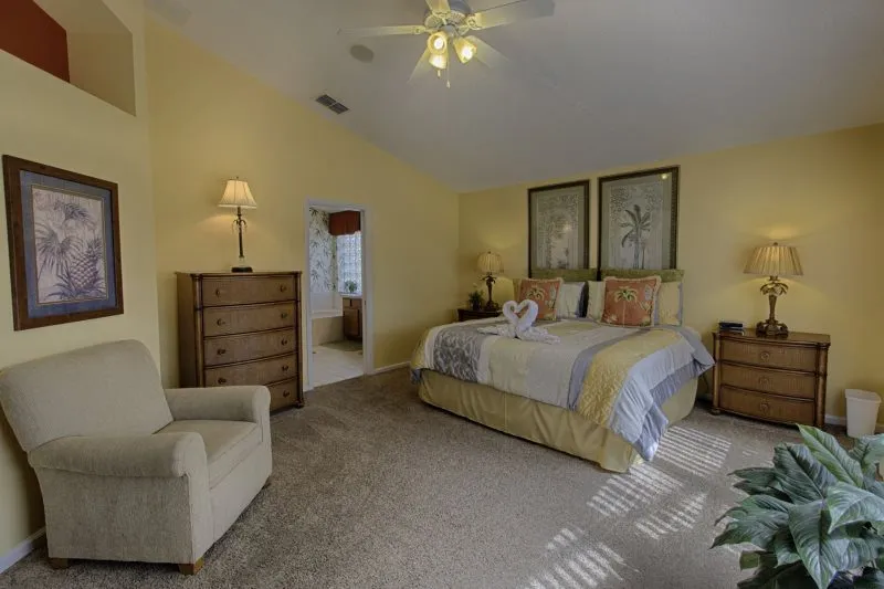 This Mediterranean-style villa is located in the gated community of Tuscan Hills, Davenport, which also has on-site facilities including a clubhouse, gym, games room, childrens’ play area and tennis and volleyball courts. The accommodation is one one level and is tiled throughout. There are 3 bedrooms, one king bed with en-suite bathroom, one queen and one twin. Each bedroom has its own flat screen TV.The entrance opens to an open plan floor space with a lounge and dining area, both of which have a door to the pool deck. There is a fully equipped kitchen and a utility cupboard with a washer and dryer. Complimentary Wi-Fi is provided. The pool is quite secluded as there are privacy hedges either side. A BBQ is available for a fee and there is a pool safety fence. Bed Configuration Bedroom 1: King size bed, TV, en-suite shower room Bedroom 2: Queen size bed, TV Bedroom 3: Twin beds, TV Family bathroom More Information There is an additional optional charge to heat the pool.